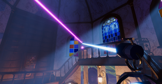 At first, we were really struggling with the puzzles we wanted to create, and we didn't have a clear idea of the main mechanic we wanted to incorporate. So we made a bunch of different puzzles with different mechanics, and I ended up making this laser prototype which you can see in the video: